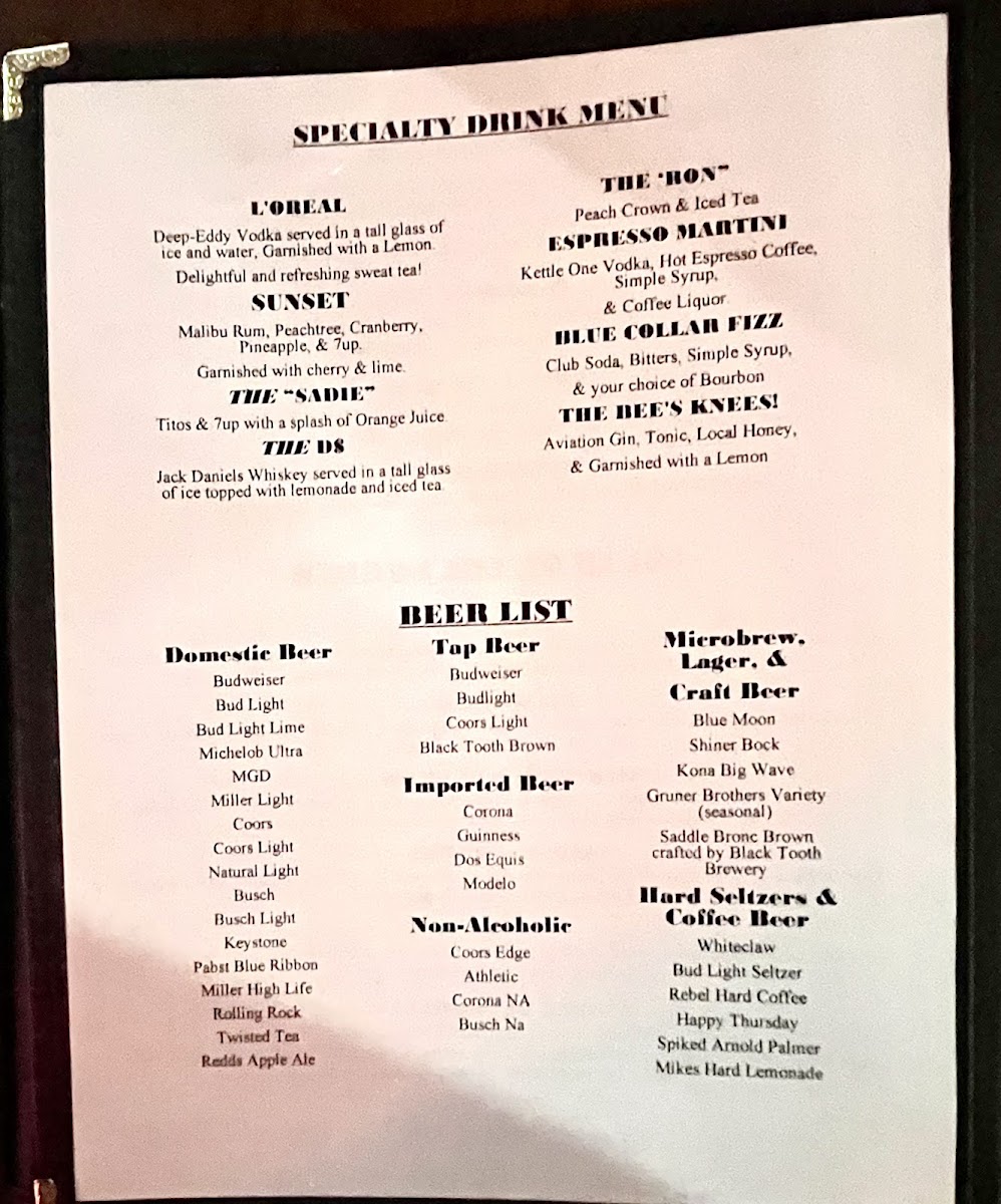 For those craving a taste of the Southwest, the Taco Plate and Nachos Supreme deliver flavor-packed experiences that are sure to satisfy. The atmosphere is friendly and welcoming, embodying a true cowboy bar spirit, enriched by live entertainment like karaoke and a lively bar setup.